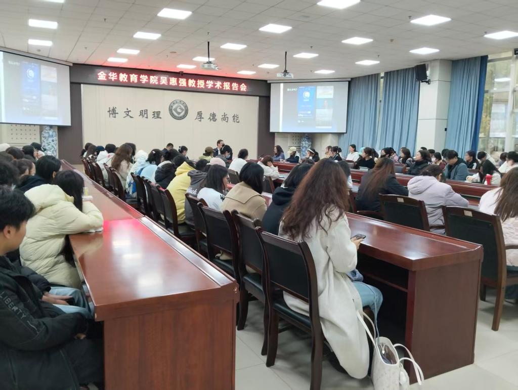 10月31日上午,金华教育学院党委书记吴惠强教授,应邀在高新校区甘棠厅,为我院师生作了题为《与未来教师谈校家社协同育人》的学术报告。报告会由院长马多秀教授主持,学院教师、研究生、本科生等共计百余人参加了本次报告会。