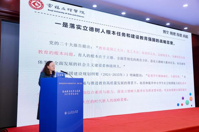 教育学院教师团队马多秀教授、宋丽副教授和黄晓茜副教授应邀参会。马多秀教授为“教材编研与使用”平行会场做学术报告分享,题为《中小学生社会情感能力培养融入教材建设研究》,报告深刻聚焦国家教育强国战略,积极落实立德树人根本任务,贴合基础教育课程教学综合改革,引发现场诸多学者的深度思考和热烈反响。