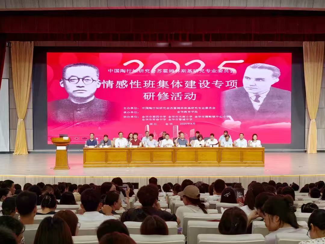 8月23日-25日,由中国陶行知研究会苏霍姆林斯基研究专业委员会主办、金华教育学院承办的“2025年中小学情感性班集体建设专项研修活动”在金华四中举行。来自全国各地的中小学校长、班主任,及教育领域专家学者共600余人齐聚金华,以“情感教育与班集体建设”为核心,共话教育理念革新,共探育人实践路径。中国陶行知研究会常务副会长兼秘书长陈洛,中陶会苏专会理事长李镇西,金华市政协副主席胡晓杭,金华市委教育工委专职副书记、市教育局党组副书记陈群,以及婺城区政协、区教育局、苏专会领导等参加开幕式。我校教育学院院长马多秀教授应邀参加会议并作大会报告。